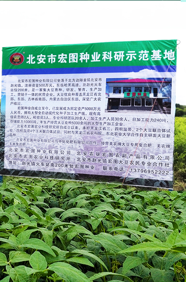 北安市宏圖種業(yè)有限公司是一家及大豆育種研發(fā)、生產(chǎn)加工、銷(xiāo)售于一體的種業(yè)企業(yè) ,成立于2010年6月24日。公司坐落在北方邊陲重鎮(zhèn)北安市趙光鎮(zhèn),公司擁有趙光農(nóng)場(chǎng)、紅星農(nóng)場(chǎng)、建設(shè)農(nóng)場(chǎng)等多家良種繁育基地。得天獨(dú)厚的地理優(yōu)勢(shì)為繁育出優(yōu)質(zhì)的大豆種子提供了便利的條件。
